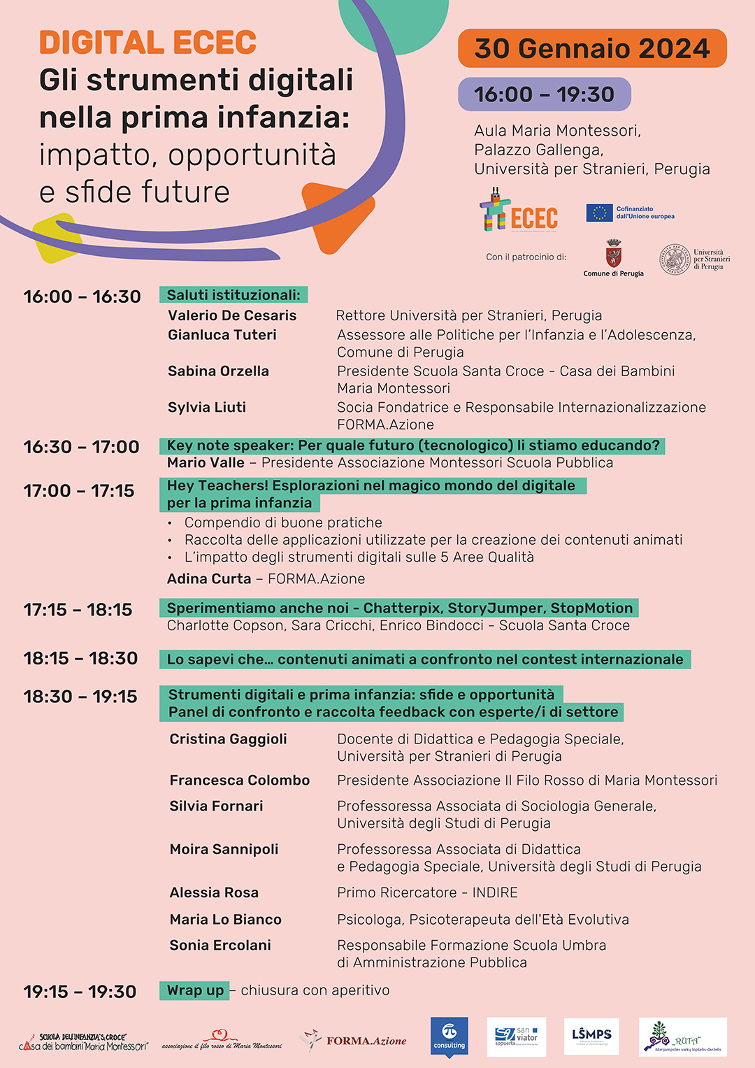 Si è svolto oggi All’Università per Stranieri di Perugia l’evento conclusivo del Progetto Europea Digital ECEC - Early Childhood Education and Care, di cui l’Italia è partner con la Scuola Santa Croce – Casa dei Bambini “Maria Montessori” insieme ad istituzioni formative di Lituania, Spagna e Grecia.