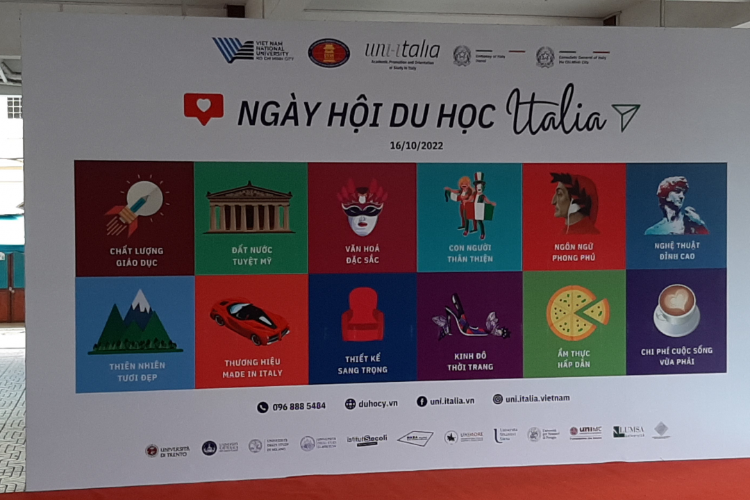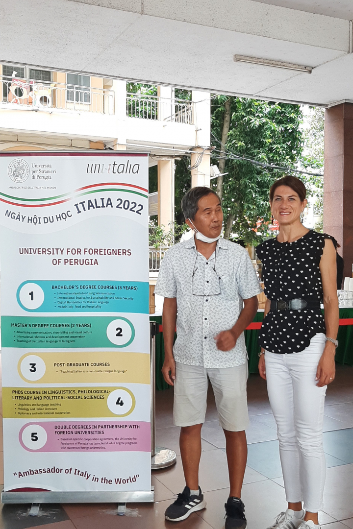 Presso gli Italian days, la due giorni di promozione dell’alta formazione italiana (15 e 16 ottobre), ha registrato grande afflusso lo spazio espositivo della Stranieri, ove sono confluiti sia studenti delle scuole superiori che degli atenei vietnamiti, anche per partecipare alla presentazione dell'università e della sua offerta formativa.
