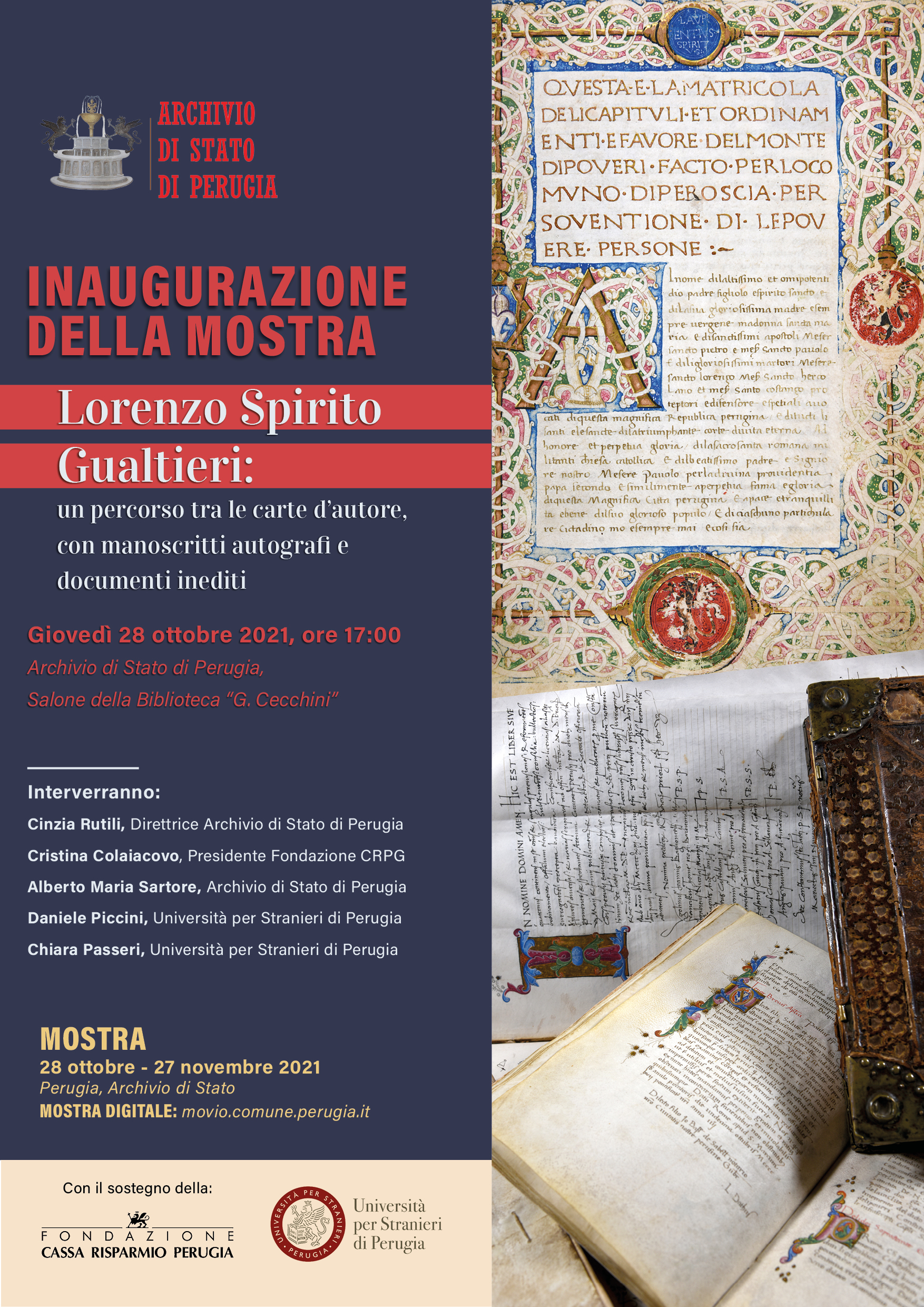 Alberto Maria Sartore, Archivio di stato di Perugia