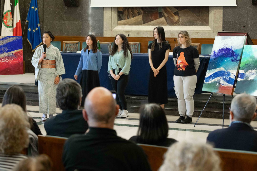 Alle ore 17:30, nell'ambito dell'incontro con l'autore Amitrano, si terrà la presentazione della mostra "Dialogo" dell'artista giapponese Kuraishi Chigusa, allestita per l'occasione nell'Aula Magna di Palazzo Gallenga, con la partecipazione del critico Mauro di Ruvo.