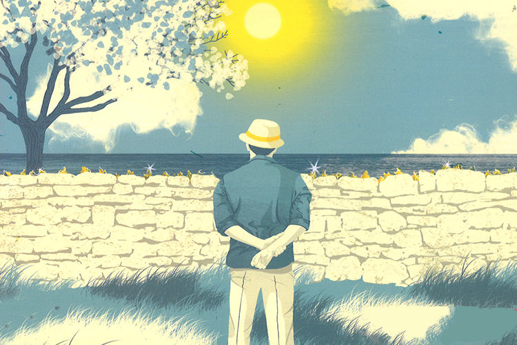 Dettaglio della locandina: uomo di spalle che guarda il mare