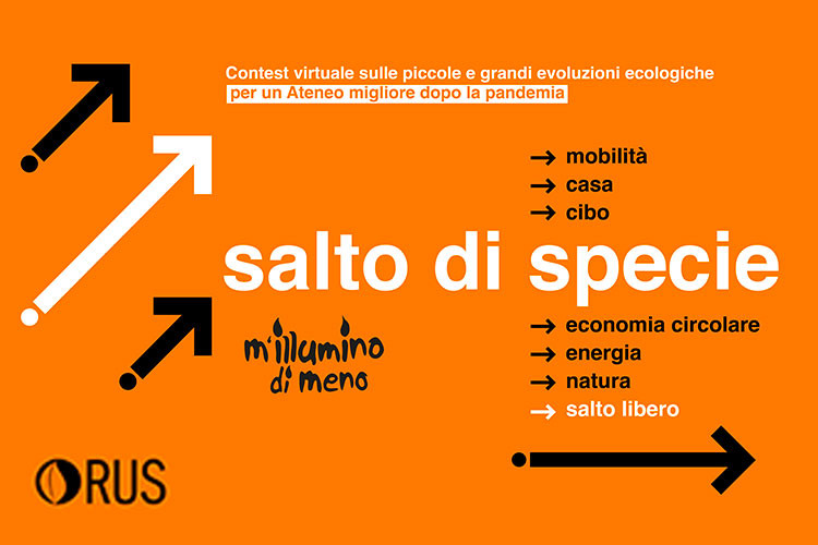 Ti chiediamo quindi di raccontarci, attraverso le immagini, i tuoi piccoli e grandi “salti di specie”, le tue evoluzioni ecologiche, già fatte o quelle in programma, che potrebbero stimolare una maggiore sostenibilità in Ateneo.