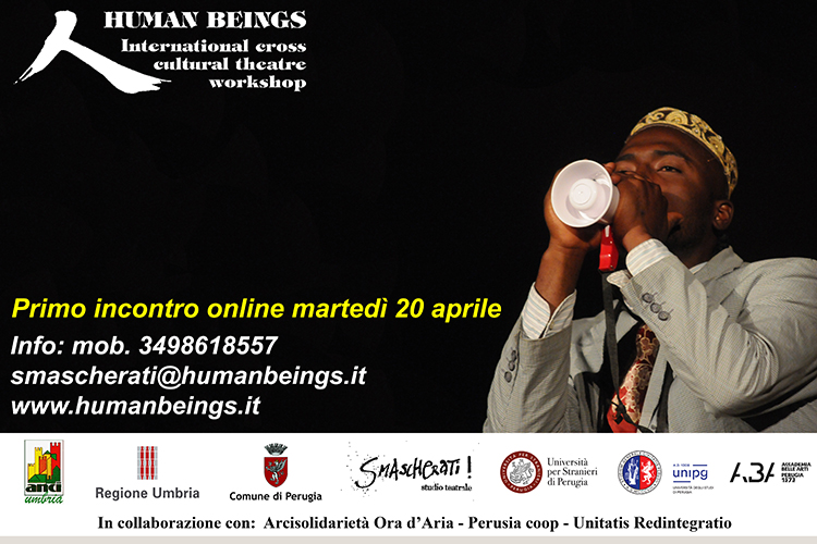 Sulle bacheche pubbliche di Perugia dedicate agli eventi culturali, ormai da mesi tristemente vuote e arrugginite, da qualche giorno sono di nuovo comparse le locandine verdi che da 27 anni annunciano in tante lingue le periodiche riaperture del laboratorio teatrale interculturale “Human Beings”, diretto da Danilo Cremonte. Una provocazione per ricordare che la cultura e il teatro esistono e resistono. Ma anche un annuncio, perché il laboratorio teatrale sta per riaprire, nonostante la pandemia.