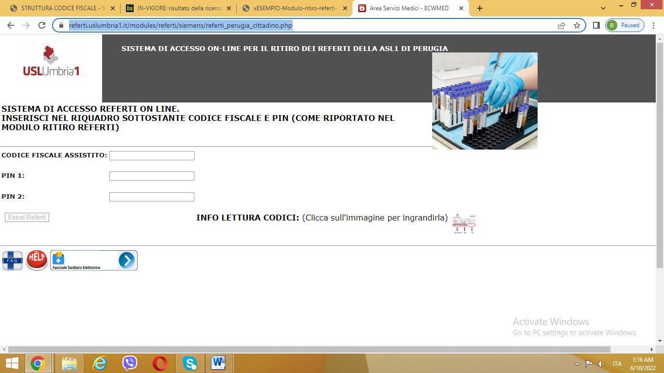 ESERCIZIO 26 - Immagina di aver effettuato le analisi del sangue, prova da solo a compilare il modulo e a scaricare il tuo referto: (trovi la immagine tra i materiali scaricabili intitolata 6.png) ( https://referti.uslumbria1.it/modules/referti/siemens/referti_perugia_ci... )