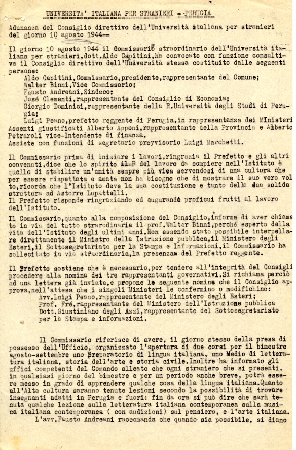 2. Verbale dell’adunanza del consiglio direttivo dell’Università italiana per Stranieri del giorno 10 agosto 1944 - pag.1, pag.2, pag.3